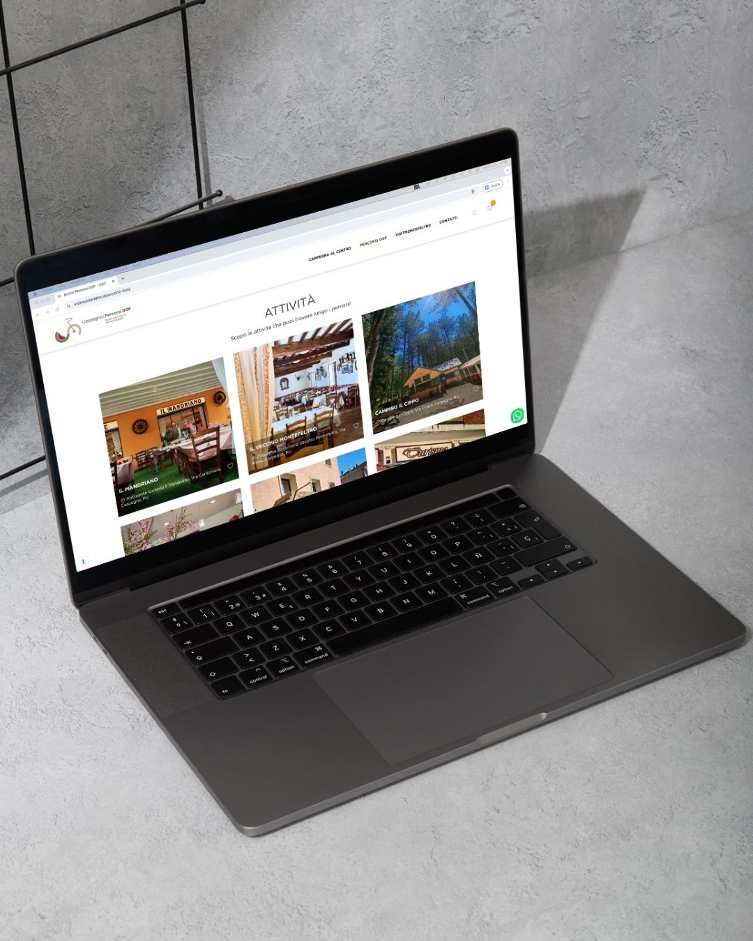 Il nostro obiettivo era trasformare il sito in una mappa interattiva del territorio, capace di coinvolgere l’utente e invitarlo all’esplorazione. Per questo, abbiamo sviluppato una struttura WordPress completamente personalizzata a codice, integrando mappe dinamiche, link diretti alle attività e una wishlist che permette agli utenti di salvare i propri luoghi preferiti e riceverne i dettagli via email.